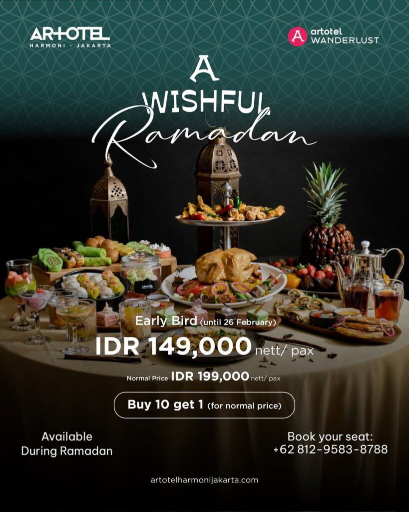 Seluruh penawaran tersedia sepanjang bulan Ramadan. Untuk reservasi dan informasi lebih lanjut, kunjungi situs resmi artotelharmonijakarta.com atau hubungi WhatsApp di 0819 3285 6111.
