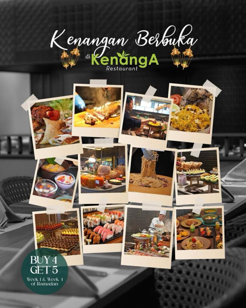 Mengusung konsep All You Can Eat Buffet, Kenanga Restaurant menyajikan beragam pilihan menu mulai dari takjil tradisional, hidangan utama khas Nusantara dan internasional, live cooking station yang disajikan langsung dari dapur, hingga aneka dessert penutup. Ragam sajian ini melengkapi suasana berbuka bersama keluarga, kolega, maupun sahabat dalam ambience restoran yang nyaman.