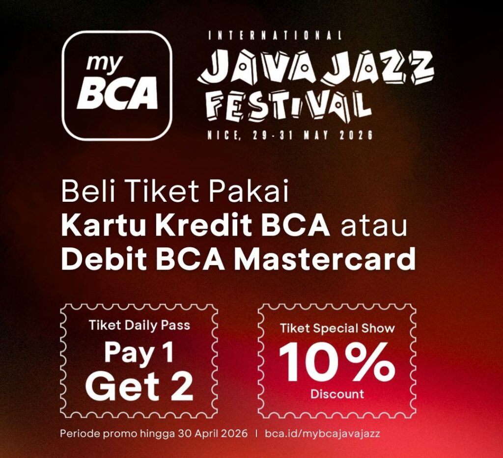 Tiket myBCA International Java Jazz Festival 2026 sudah tersedia dan dapat dibeli melalui situs resmi www.javajazzfestival.com. Untuk informasi terbaru juga bisa diikuti melalui media sosial resmi Java Jazz Festival @javajazzfest dan @javafestpro.