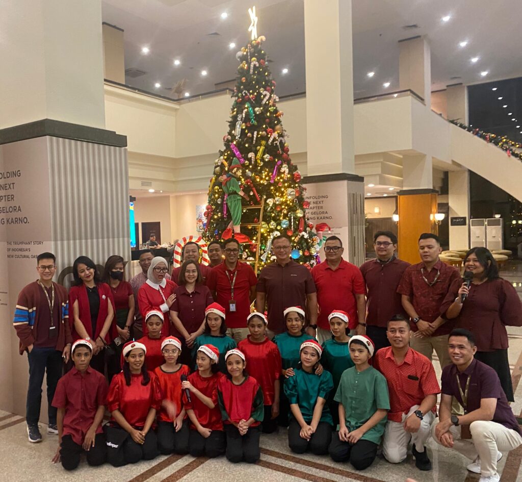 Acara semakin meriah dengan lantunan paduan suara dari Yayasan Prima Unggul, yang membawa semangat Natal ke seluruh area lobby.