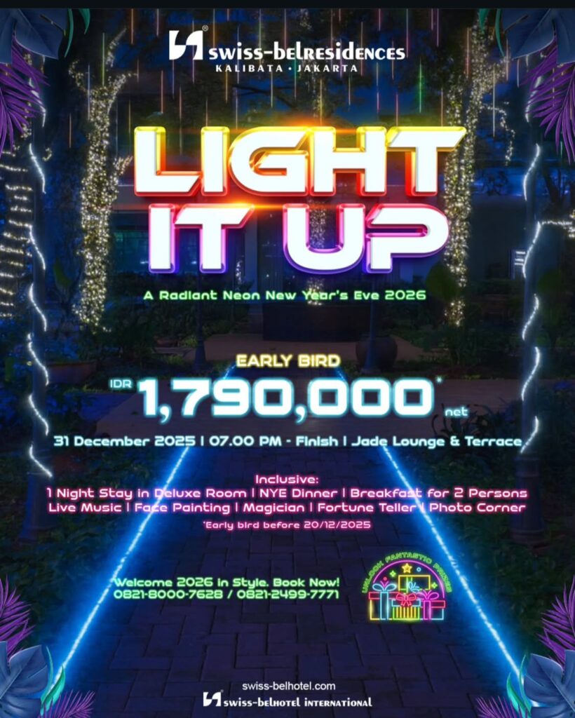 Voyagers.id – Swiss-Belresidences Kalibata Jakarta siap menyalakan malam pergantian tahun lewat tema “Light It Up! A Radiant Neon New Year’s Eve 2026”. Pesta malam Tahun Baru ini menghadirkan suasana neon yang modern dan penuh energi—sempurna untuk menutup 2025 dengan momen tak terlupakan.