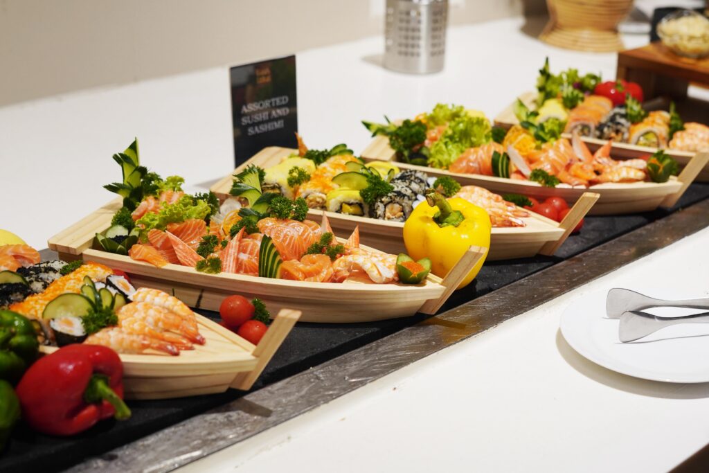 Bagi yang ingin bersantai lebih maksimal, tersedia pilihan free flow beverages sebagai add-ons: • Full Alcohol Package (Beer, Wine, dan Cocktails) – IDR 358.000 nett per orang atau • Beer & Wine Package – IDR 298.000 nett per orang. Dari sushi dan sashimi yang disajikan bebas, menu Western klasik, hingga hidangan Indonesia yang kaya rasa—semuanya hadir dalam satu pengalaman bersantap yang memanjakan. Jangan lewatkan juga area dessert dengan aneka kue manis, soft-serve ice cream, hingga gulali yang membawa sentuhan nostalgia.