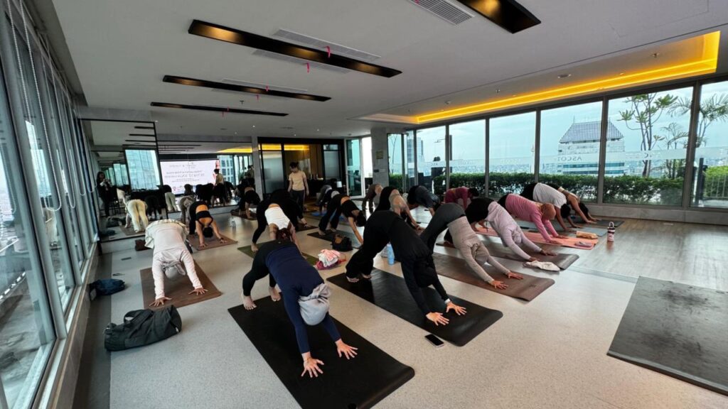 Berlatar panorama kota Jakarta saat matahari terbenam, para peserta diajak menikmati sesi yoga yang menenangkan sekaligus menyegarkan. Perpaduan gerakan, teknik pernapasan, dan refleksi diri menciptakan ruang untuk melepas penat, menemukan kembali keseimbangan, serta terhubung dengan diri sendiri.